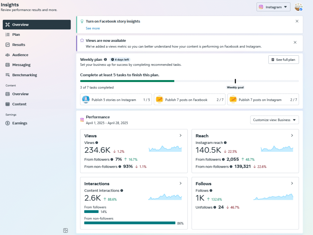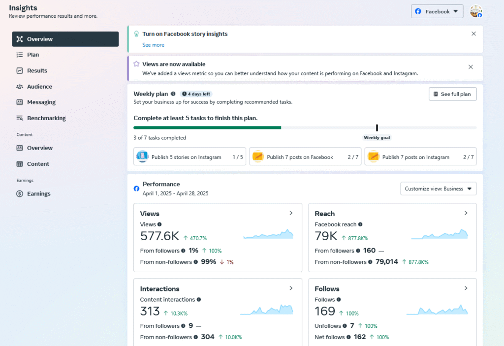 These insights showcase the performance of our managed Facebook and Instagram accounts. On Facebook, we achieved a massive increase in reach (+877%) and video views (+470%), while Instagram recorded strong engagement growth with over 2.6K content interactions and a 132% boost in new followers. These results reflect the effectiveness of our content strategy, consistent posting, and well-optimized campaigns.